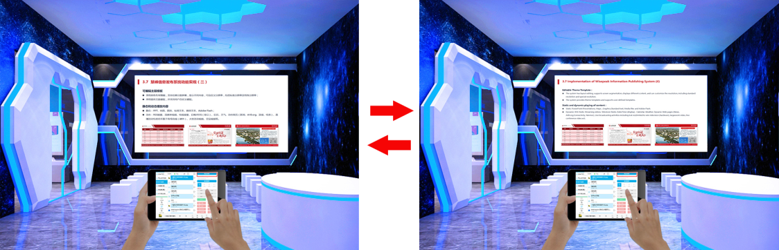 8、 真正做到了講解員走到哪、控到哪、講到哪、操作到哪的需求,實現(xiàn)了一個平板控到底的使用方式。真正體現(xiàn)了展廳里的人、手持端、展示端、觸控端的交融互動;