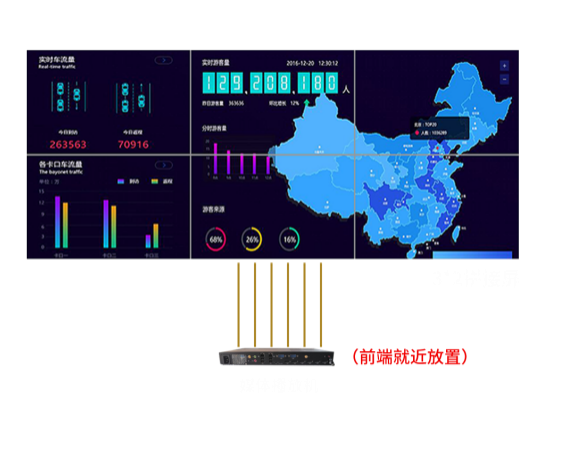 2、 通過多臺主機(jī)輸出顯示信號,經(jīng)過拼接圖象處理器來達(dá)到拼接屏全屏顯示和分屏顯示的切換效果,導(dǎo)致現(xiàn)場安裝復(fù)雜、布線繁瑣;